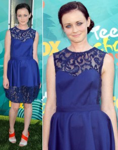 My thoughts: First of all, I don’t care how many “Traveling Pants” she wears…to me, Alexis Bledel will always be the fast-talking, neurotic in an adorable way, straight-A student, Rory Gilmore. But back to the clothes. I’m sure this is a vintage dress, and I respect vintage most of the time. This time, however, it just looks like an old bridesmaid’s dress that someone gave to Goodwill because they never thought they (or anyone else, let’s be real here) would wear again.