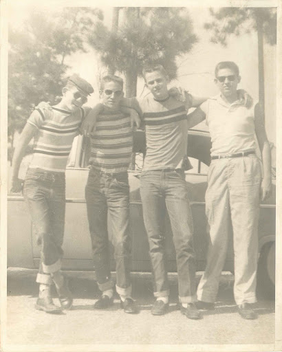 That would be my dad on the far left, with the super rolled up jeans and the hat on. His twin brother is on the far right.