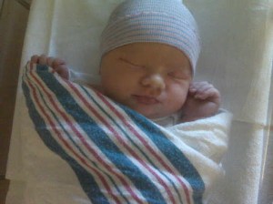So, here she is, y’all – hands out of her “burrito wrap” because she cries when they’re confined: